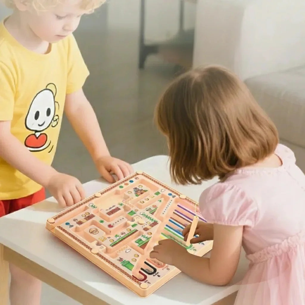 Ce labyrinthe magnétique est un outil puissant pour affiner la pensée logique, la reconnaissance des couleurs et la concentration. Chaque mouvement est une petite victoire qui renforce les capacités cérébrales de l'enfant.